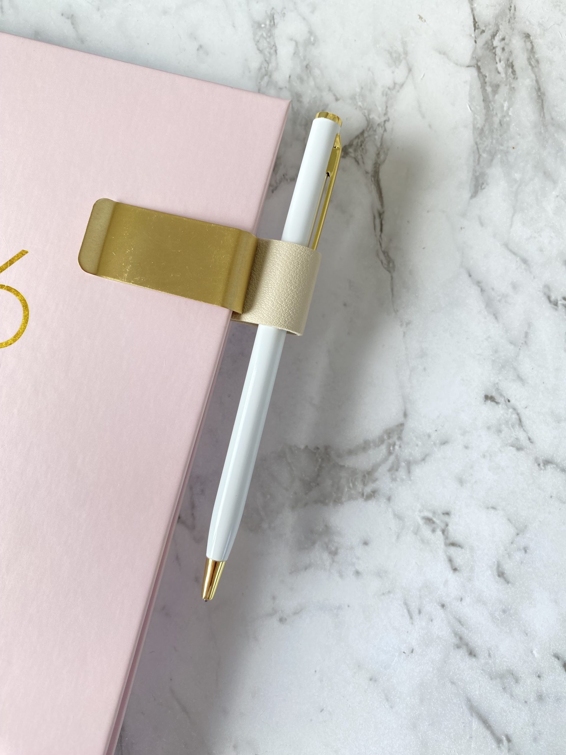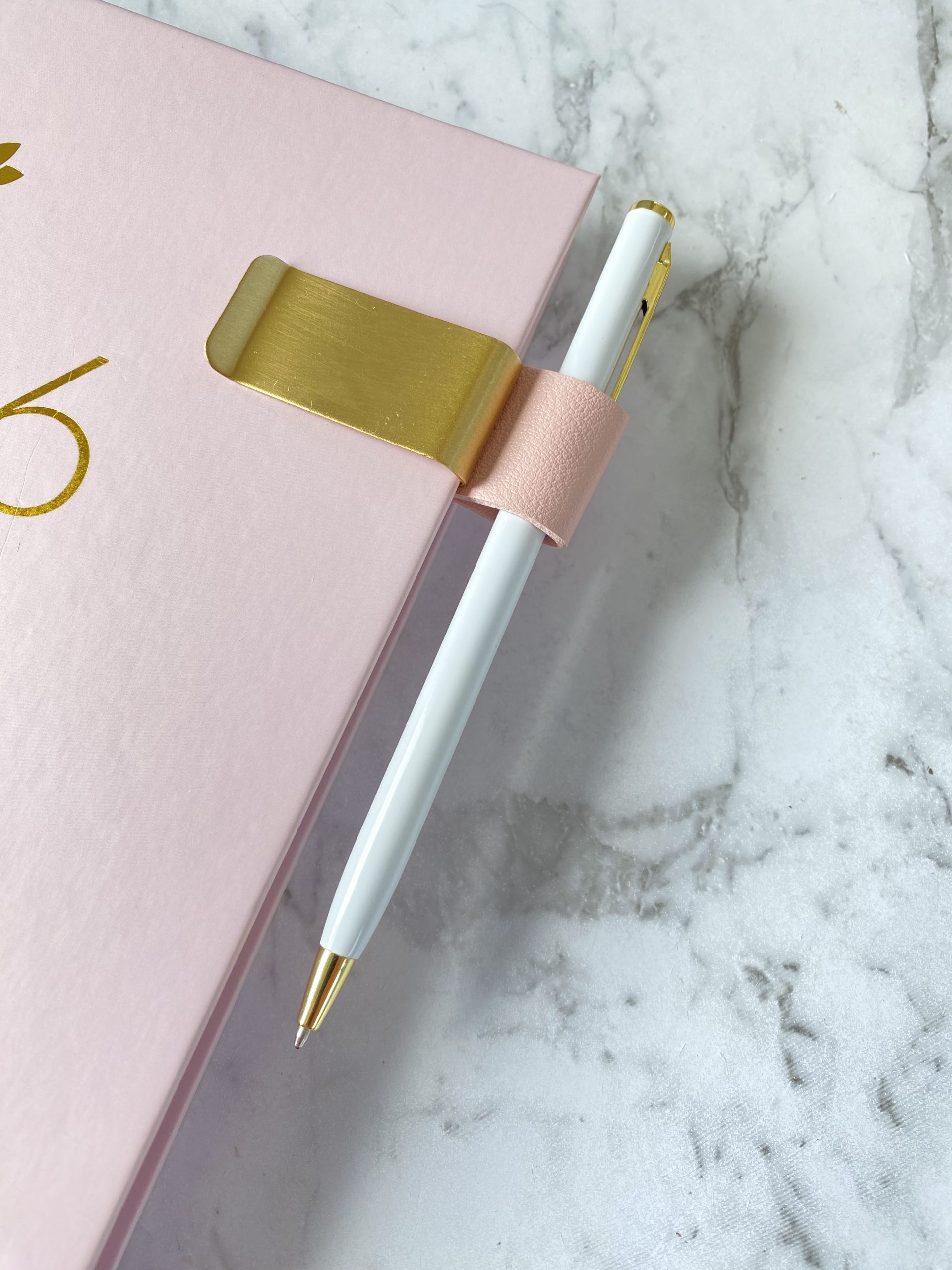 This pen holder is made with vegan leather loop and brass clip that you can attach to your favourite planners, notebooks and journals.